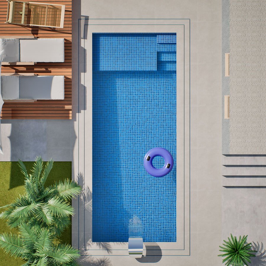 Inspirada nas águas serenas do Mar Egeu, a piscina Egeo combina design moderno e elegância minimalista. Criada para quem aprecia equilíbrio e conforto, ela reflete o luxo em sua forma mais pura, com linhas retas e proporções harmoniosas que se integram perfeitamente a projetos arquitetônicos contemporâneos.
